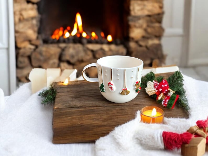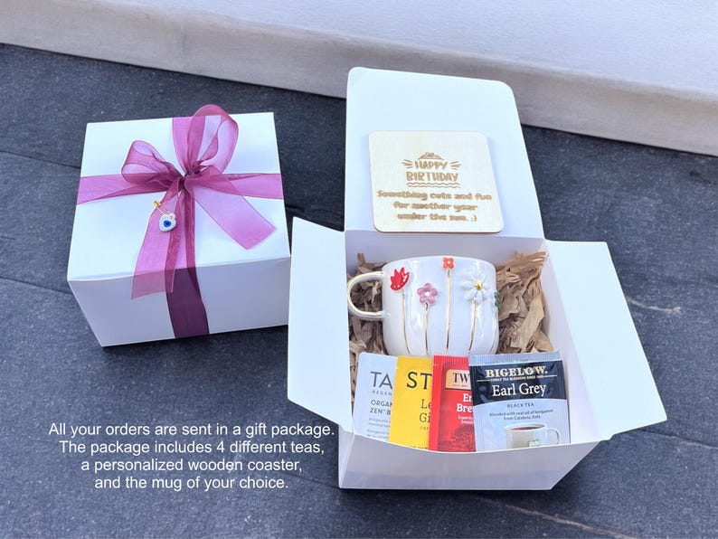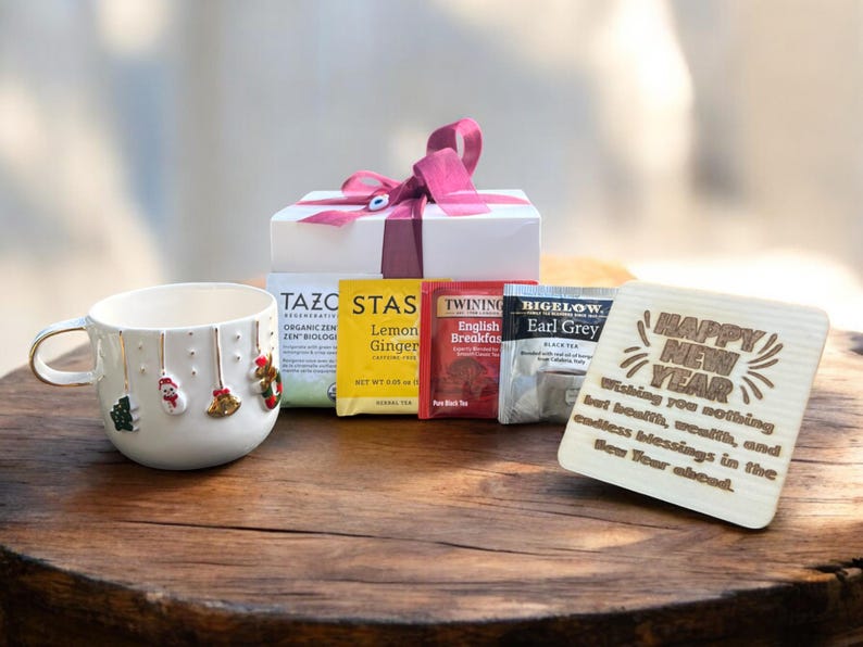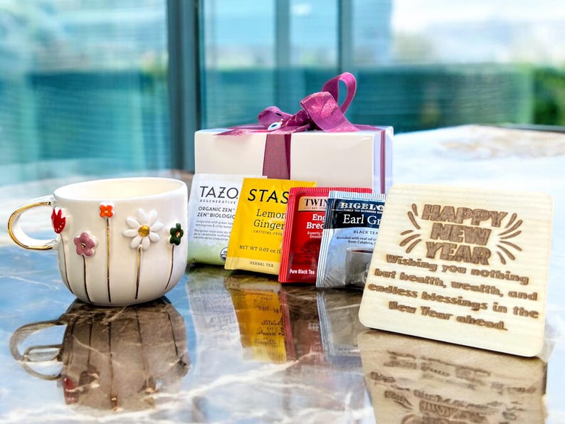 Personalized Handmade Ceramic Mug 12oz-14oz Coaster Teas Gift Box Set - Unique Pottery Coffee Tea Cup for Christmas & New Year Gifts